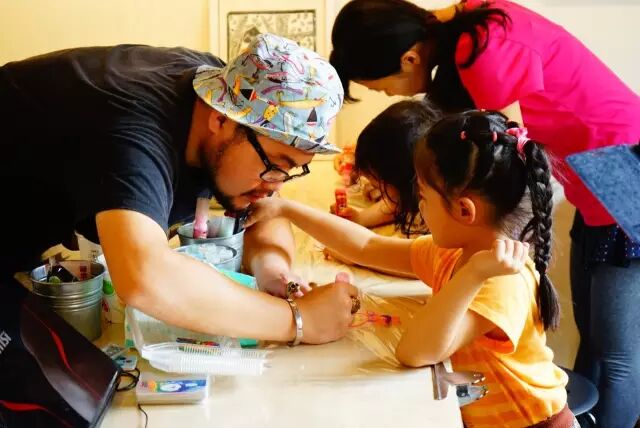 路过一家玻璃窗花小店,络腮胡子微胖的店主温柔地交小朋友制作玻璃窗花,有一种反差萌。