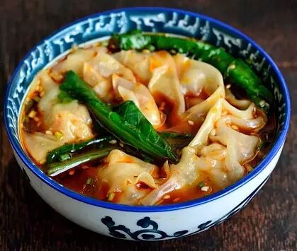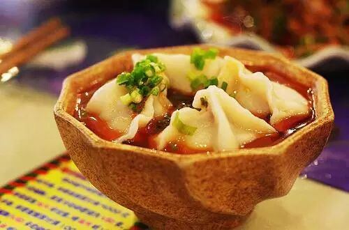 云吞来到四川,名为抄手(“抄起你的手”,哈这是拿抄手告白的节奏吗XD),当然也要摇身一变,加上浓油重彩一瓢,才能完美贴合四川火辣辣的气场。广东云吞喜好清爽,在四川湿冷的天气下,不加辣反而好像缺少了什么。