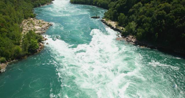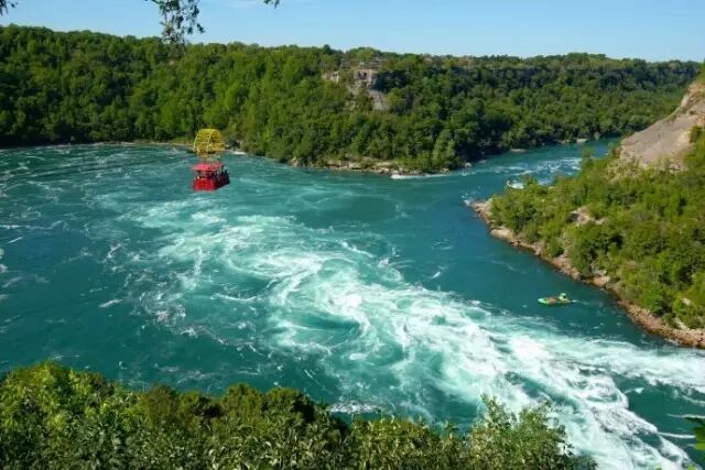 来到尼亚加拉大峡谷底部,便是尼亚加拉河大漩涡,另一个绝不能错过的奇特自然现象(一般人也不知道哦)!几千年前,尼亚加拉河缓缓侵蚀了尼亚加拉悬崖,不仅创造了大峡谷,改变了河道的方向,居然还使得河水发生了逆时针方向的旋转。