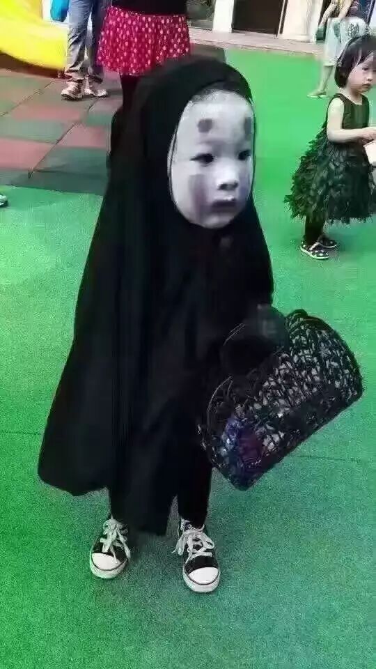 这位日本小朋友cos的无脸人,略带一点萌感,但看久了貌似又有点吓人,所以建议大家的手指及时滑动屏幕,看看下面的内容。
