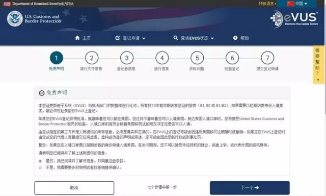 eVUS的全称是Electronic Visa Update System,即签证更新电子系统。