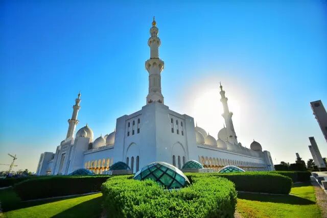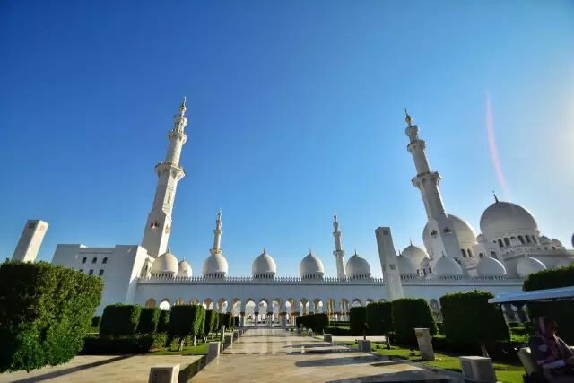 阿布扎比大清真寺实在让人无法忽视,纯白的外墙、巍峨的建筑,圆润的拱顶,远远就可以看到,即便你不能确切知道那是什么,也可以马上明白,那一定是很了不起的建筑,从而吸引人从四面八方前来朝拜。