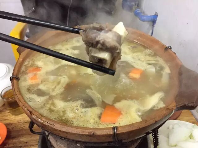 汤一定要热喝,温热的时候就会感觉肉有点膻味。汤真是一点味道都没有。我们要的是中锅,一般都是汤多肉少,因为汤太好喝了。当你把汤喝完的时候还有一锅肉………