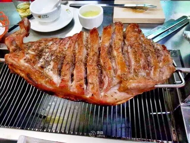 吃完火锅,紧接着的是一整条羊排。哇,天啊!烤得金黄的,那油脂那肉的肌理那孜然,你们别动,放着我来!来自地道客Wing·馬的推荐。
