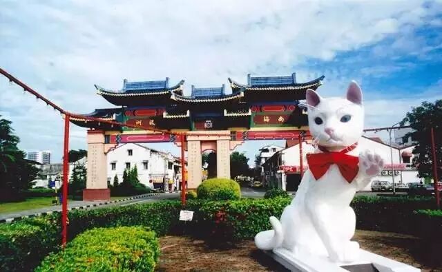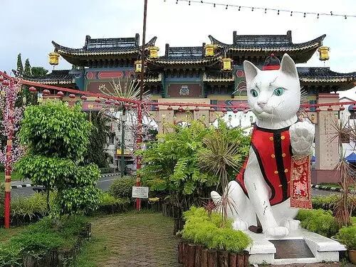 古晋(马来语:Kuching)是马来西亚砂拉越州首府,历史悠久,它位于沙捞越河两岸,当地人对猫十分喜爱,该城的标志也是一只可爱的大白猫。
