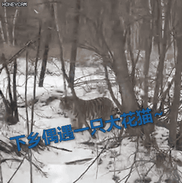 2月2日,吉林延边,一名女子和同事下班途中碰到东北虎。老虎在雪地中漫步片刻后转身返回山林。