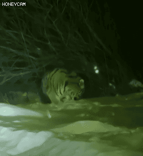 2021年2月1日晚,吉林生态摄影师王莅翔在吉林省 汪清县 金苍镇境内拍摄到野生东北虎进村捕食家犬的近距离镜头。