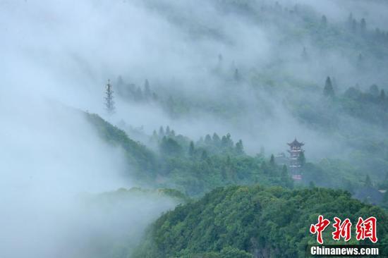 2021年7月4日早晨,雨后放晴的四川省广安市华蓥山被飘渺的云雾缭绕,宛如人间仙境。