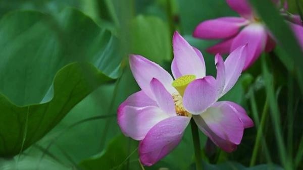 一池荷花或粉嫩娇柔,或冷艳清秀……远眺接连成片,近观处处惊艳。依偎一旁的荷叶也不甘逊色,厚实的叶片不时左右摇曳,任夏雨尽染清香;偶有卷曲的嫩叶,趁天公作美,舒展叶脉,吐露出浅绿着实显眼……