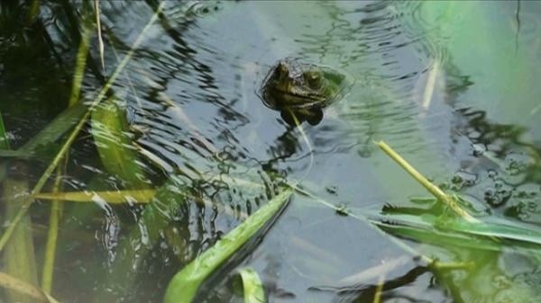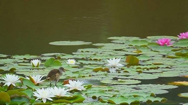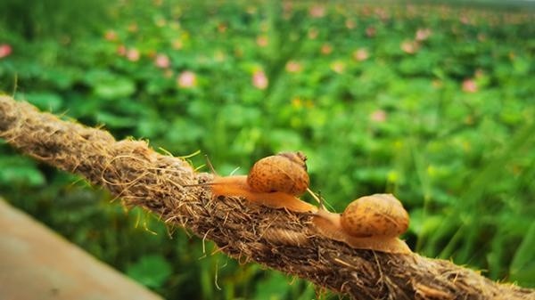 “淡定”的水鸭与荷叶缱绻相伴,不时梳理羽翼、轻舞慢走,荷塘周围湿漉漉的花草间,总有蜗牛探出头来,蠕动到栅栏上,与水面上“沉思”的青蛙高低呼应、动静结合,趣味横生。