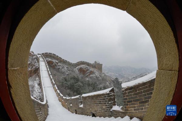 当日,河北迎来降雪。皑皑白雪覆盖长城内外,景色壮美。