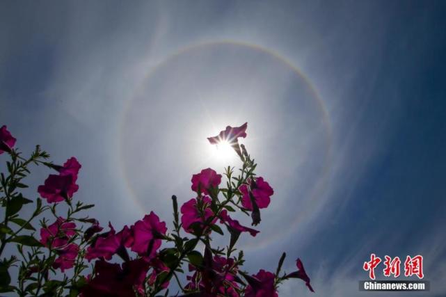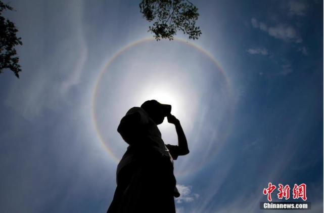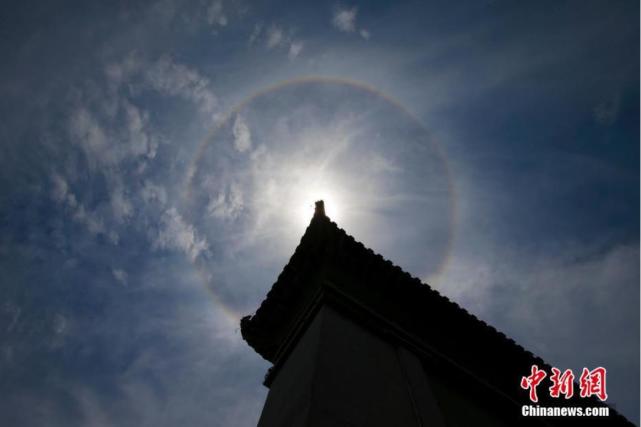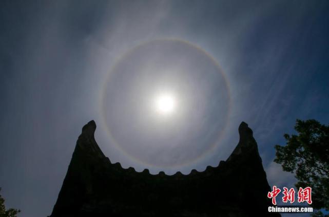 7月3日,在安徽省黄山市屯溪区拍摄的“日晕”景观。当日中午,安徽省黄山市屯溪区天空出现“日晕”景观,持续时间近2小时。