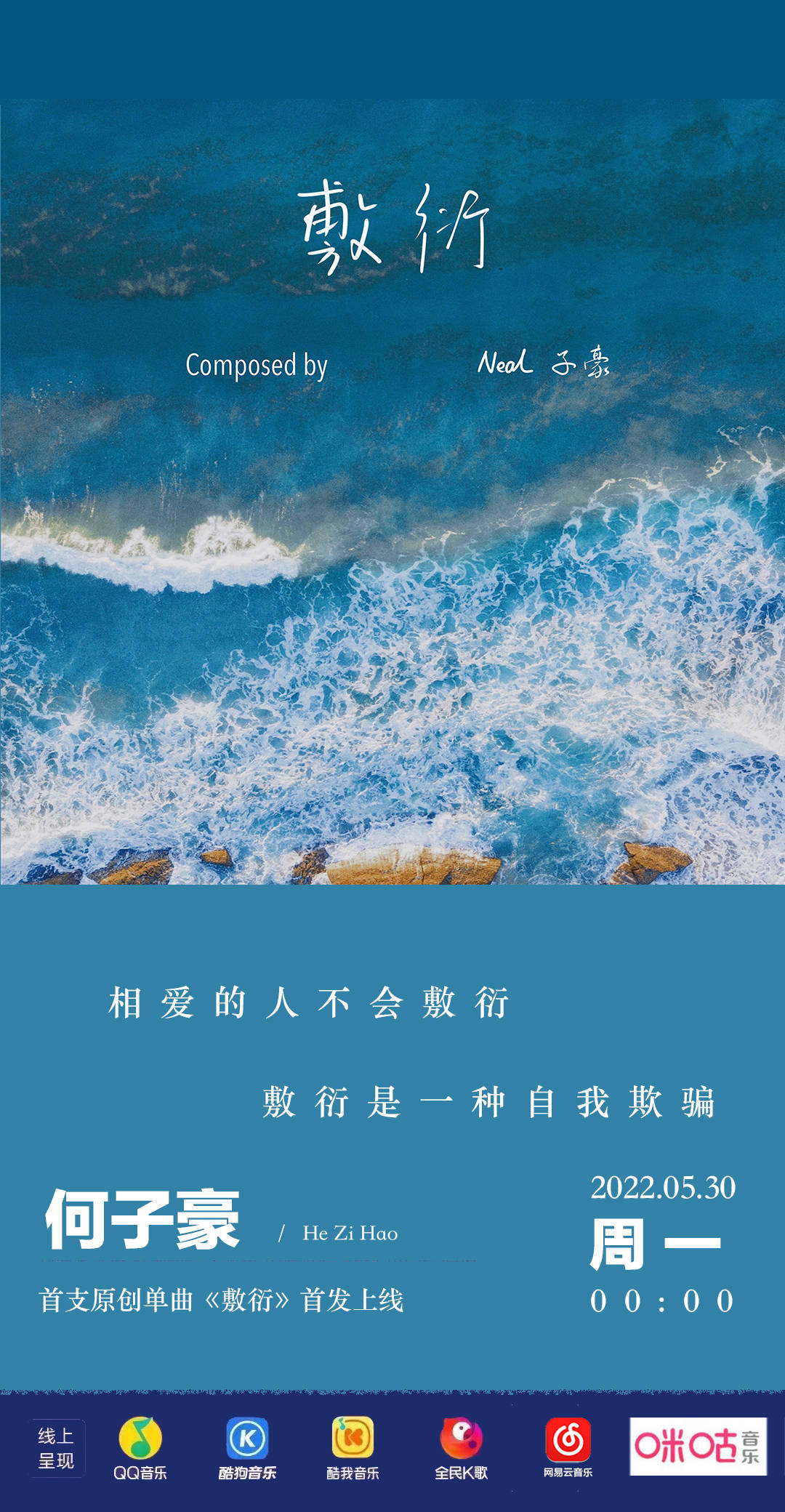 5月30日,音乐人何子豪首支原创单曲《敷衍》全网首发,正式开启全新的音乐之路,新歌表达了相恋情侣之间对爱幡然醒悟,一个人真情付出,换来的全是敷衍,当发现之后那割舍不了深情,还在伪装挽回失去的爱情。