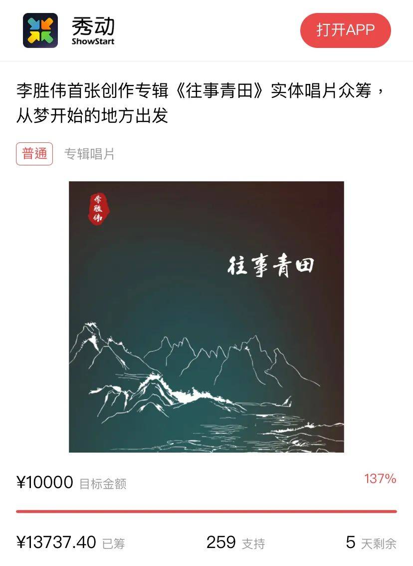 五月音乐人李胜伟发起了个人首张原创实体专辑预售模式