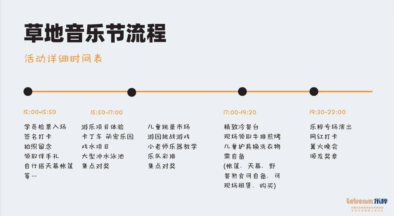 本次乐粹草原儿童音乐节除了有精彩的表演之外,还增加了多个游乐项目体验、儿童跳蚤市场、特色美食、篝火晚会等现场体验,更多惊喜等着你来第二届乐粹草原儿童音乐节现场挖掘,带给孩子不一样的成长体验。