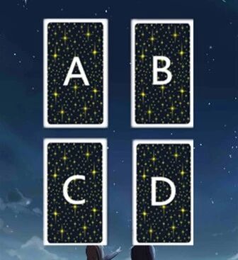 占卜规则如下:保持自己内心处于平静的状态,然后在心中默念问题,从下面四张牌中,凭感觉选出一张,选好后不可更改,记住这张牌,下面来帮你揭晓答案。