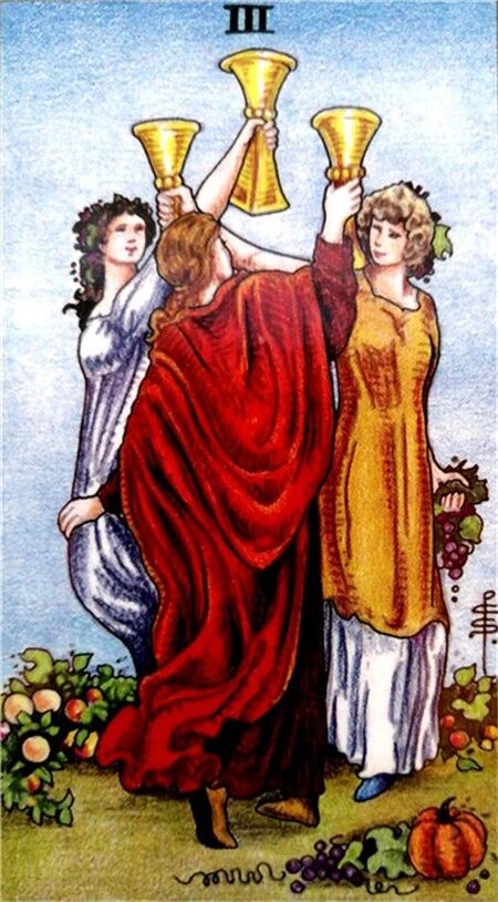 圣杯三这张牌给我们一种欢庆的感觉,对应到恋爱中则表示,你是一个非常活跃的人,不论在什么场合,都能得到很多异性的青睐,而且最近你拥有着很好的桃花运,如果遇到了自己喜欢的人,主动向对方表白,很容易会得到对方的回应,虽然你桃花运势不错,但也不可过度贪图享乐,否则很容易乐极生悲。