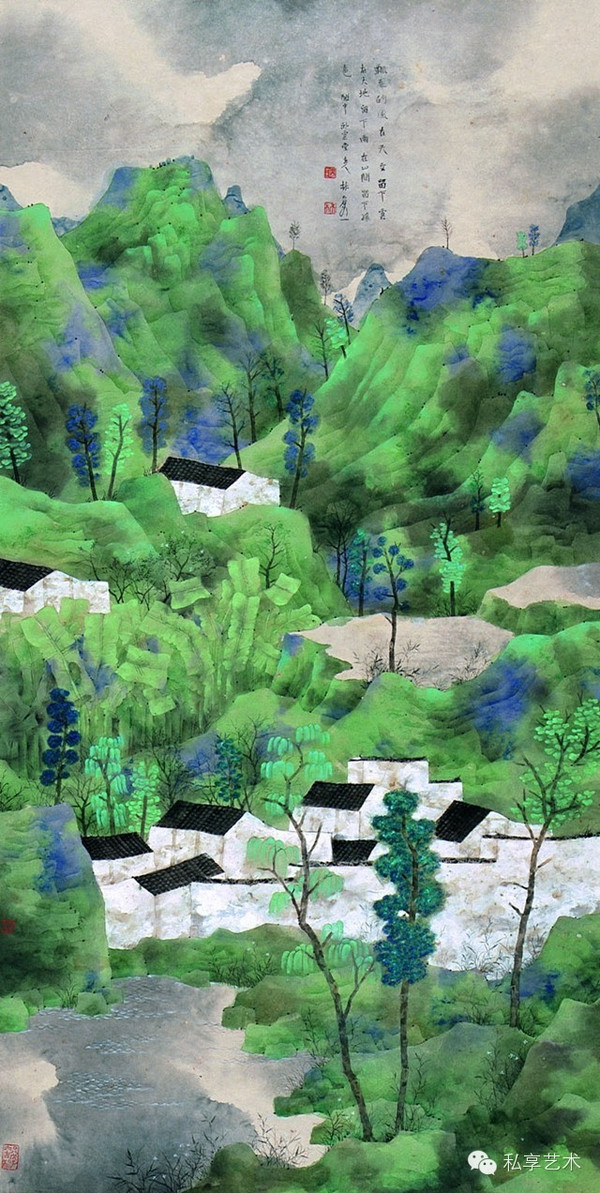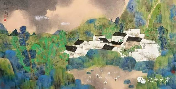 除了笔墨之外,色彩、章法构成方式应用的拓展使现代山水画的绘画情节比传统山水画更为丰富、更为自由、更加个性化。
