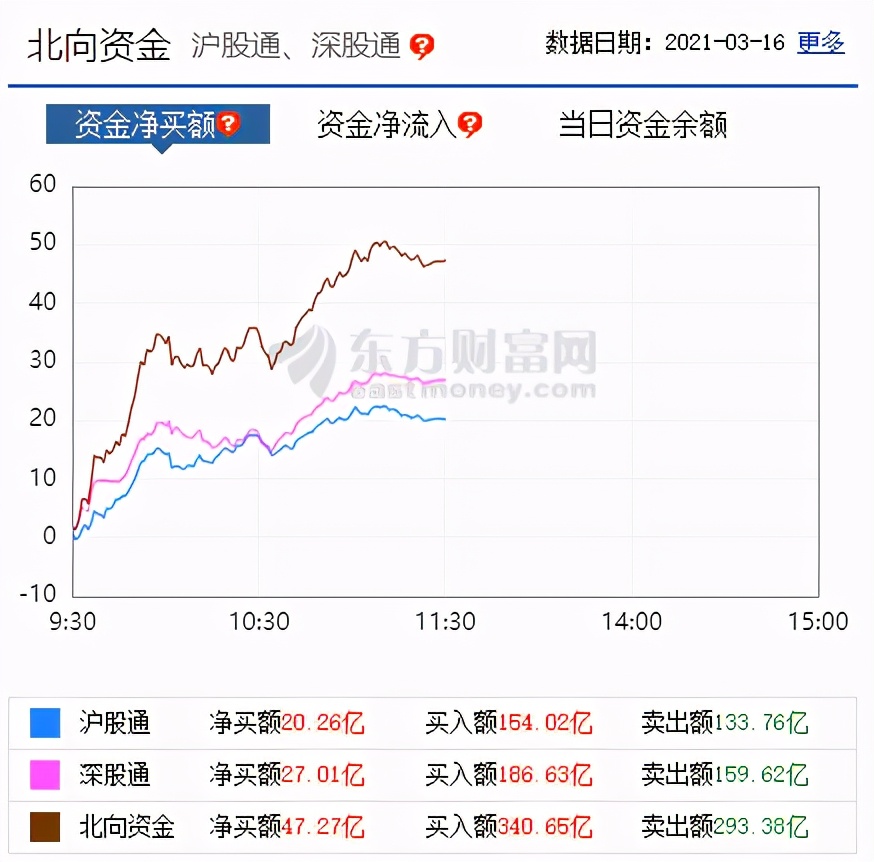【北向资金加速流入 净流入47亿元】北向资金早盘持续流入,截至目前,净流入47.27亿元。
