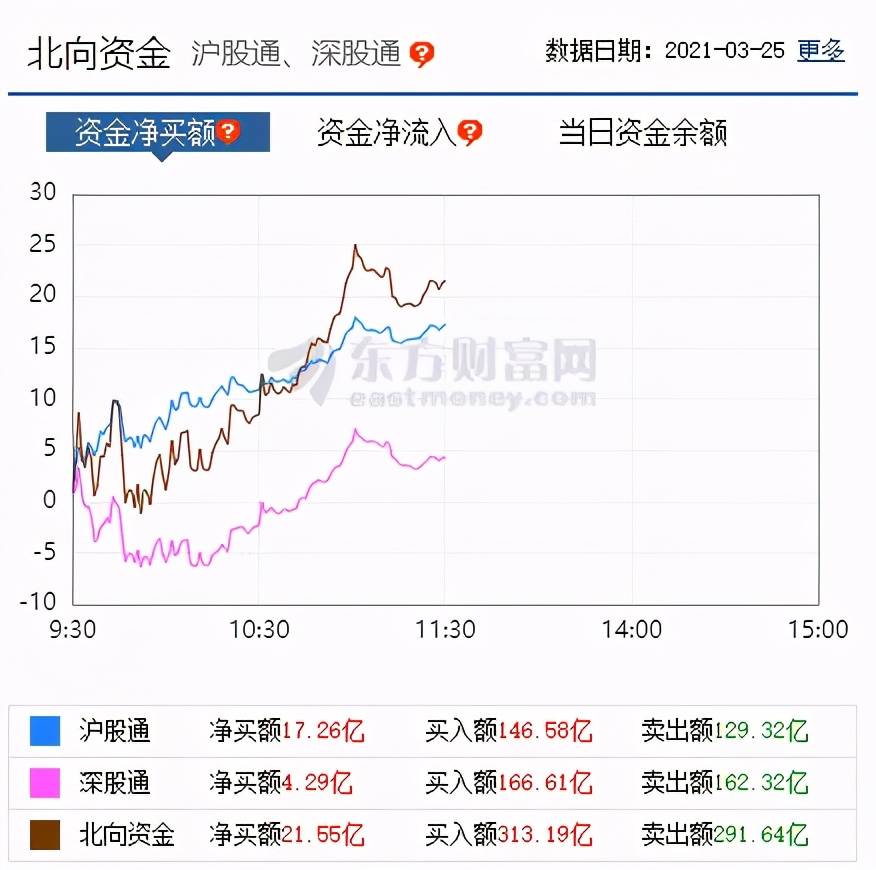 【北向资金加速流入 净流入21亿元】北向资金早盘持续流入,截至目前,净流入21.55亿元。