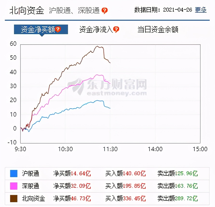 【北向资金净流入46亿元】截止午间收盘,北向资金净流入46.73亿元。