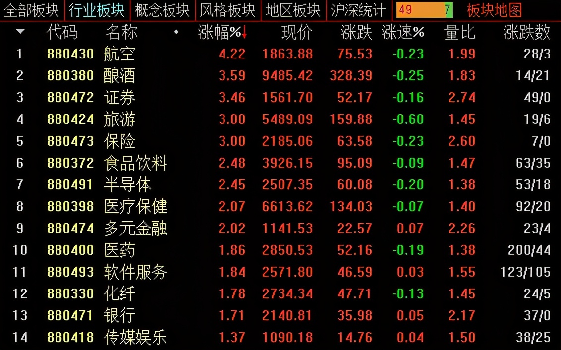 早盘A股各指数跳空高开,医美、疫苗股开盘走强,钠离子电池、国产软件持续活跃,盘中大金融板块发力,沪指单边强劲拉升,银行、保险、券商板块全线飘红,哈投股份、湘财股份涨停,东方财富涨近6%,成交额超90亿元。白酒板块分化,二线白酒回调,贵州茅台、五粮液等一线白酒大涨,碳中和等题材股回调。盘面上,证券、医美、保险涨幅居前,玉米、电力、大豆等跌幅前列。