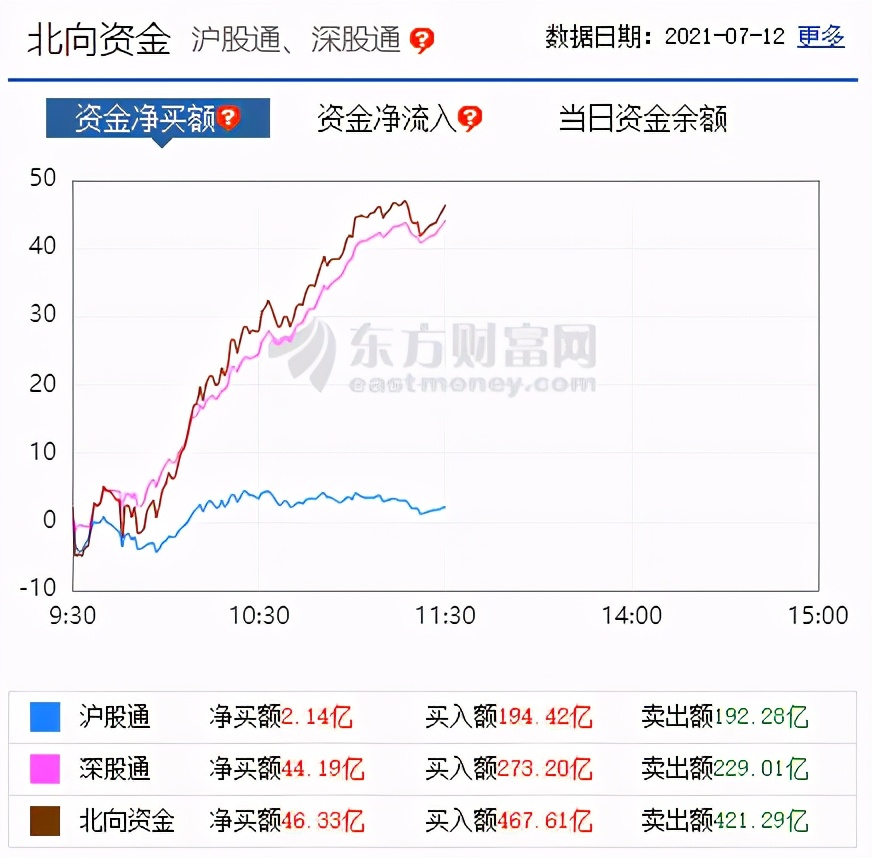【北向资金净流入46亿元】截止午间收盘,北向资金净流入46.33亿元。