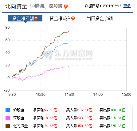 【北向资金净流入75亿元】截止午间收盘,北向资金净流入74.88亿元。
