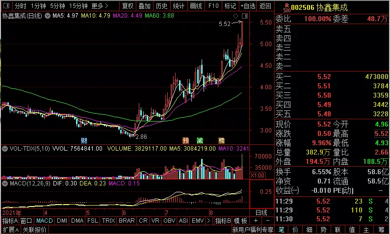 今天上午,“专精特新”概念股依然大涨,时兴了一两年的“大而美”转向了“小而专”。如新能源汽车ETF涨2.27%,光伏ETF涨2.22%,芯片ETF涨1.59%。涨幅前两板有一大批属于“小而专”,如低价光伏概念股协鑫集成,从2.8元涨到4元时,我曾提醒人们注意,该股来者不善,果然今以5.52元涨停,2个月股价翻倍。