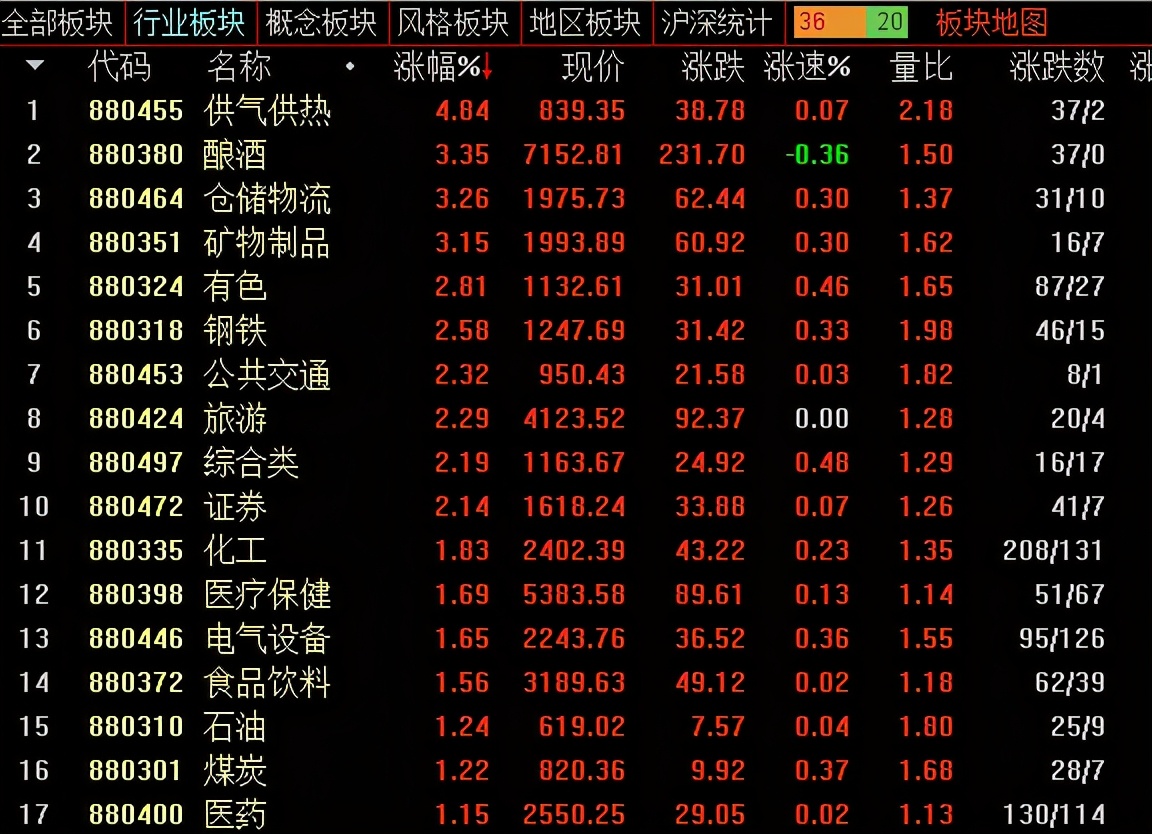早盘A股各指数集体走高,板块分化明显,个股涨跌互半。但题材股仍比较亢奋,两市涨幅超9%个股超80只,受集采消息影响,军工股大幅走弱,安达维尔、新研股份、鸿远电子、天秦准备等个股均跌超7%。工业母机、有色、燃气板块等方向受资金追捧,其中工业母机龙头股华辰装备4天涨幅高达85%。从盘面上,工业母机、CRO、煤炭、白酒等板块涨幅前列,大飞机、通讯设备、家用电器、传媒等板块跌幅居前。