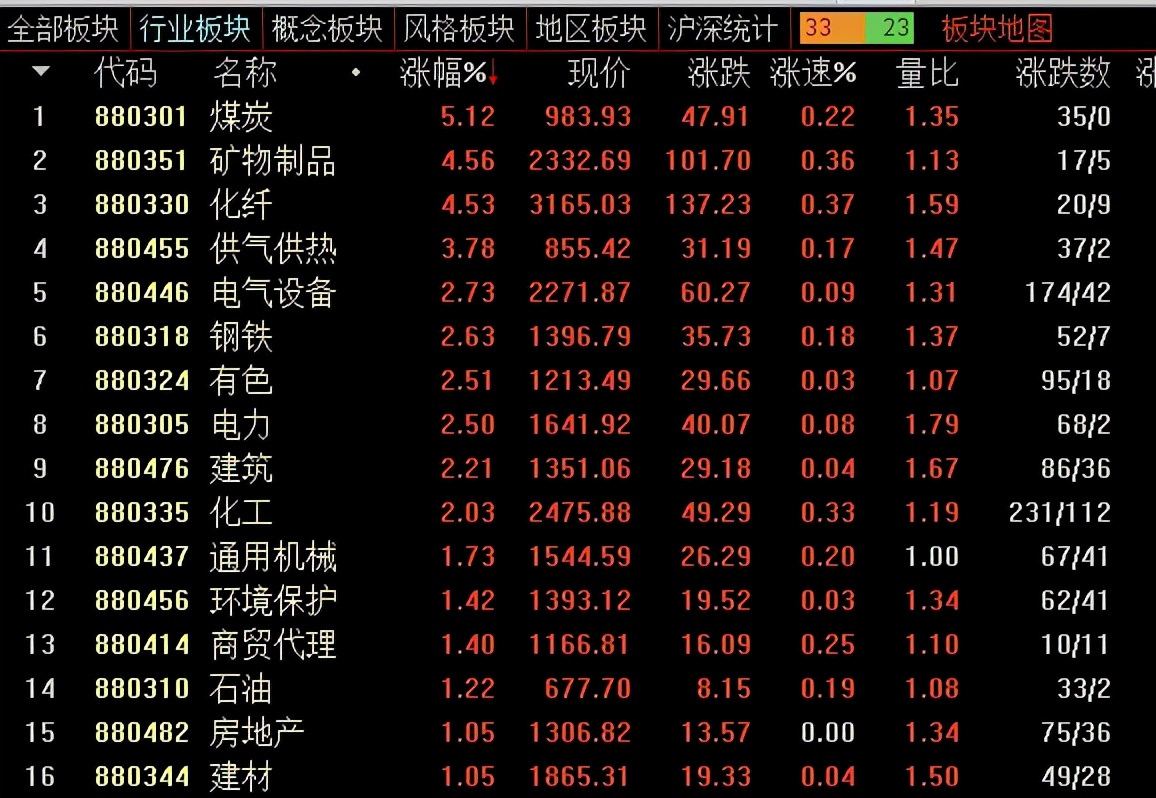 今天上午,昨日领涨的板块,除证券还略有上涨外,其余多数熄火。昨日大跌的板块,光伏产业强烈反弹,光伏ETF涨4.24%;新能源汽车板块止跌小反弹;而芯片因国家大基金再次减持,继续下跌,芯片ETF跌2.95%。导致上证指数涨0.55%,中证500涨1.46%,其余5大指数均下跌,创业板、科创板跌幅犹大。上午涨跌比为2092:1779,涨比跌多,但成交量萎缩3100亿。