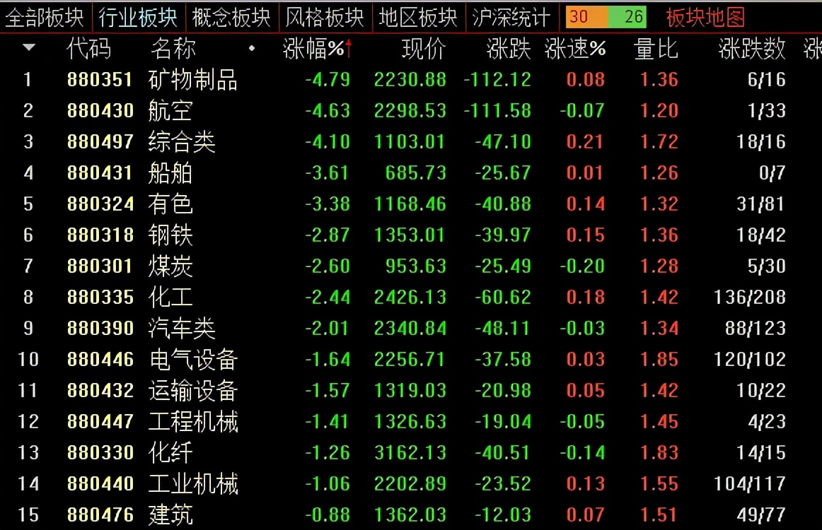 从上午盘面看,新赛道中的新能源汽车板块、光伏板块、军工板块继续大幅调整,其ETF均跌5%,午前跌3.87%、2.51%、4.17%,标杆股宁德时代跌2.25%,比亚迪跌3.75%、天赐材料跌4.31%、隆基股份跌1.25%,西藏矿业、五矿稀土跌定,赣锋锂业、天齐锂业跌7%以上,北方稀土跌6.83%。有色、煤炭、船舶、重机等板块跌幅居前,带动了大盘在上冲3613点后,一路跳水至3575点。