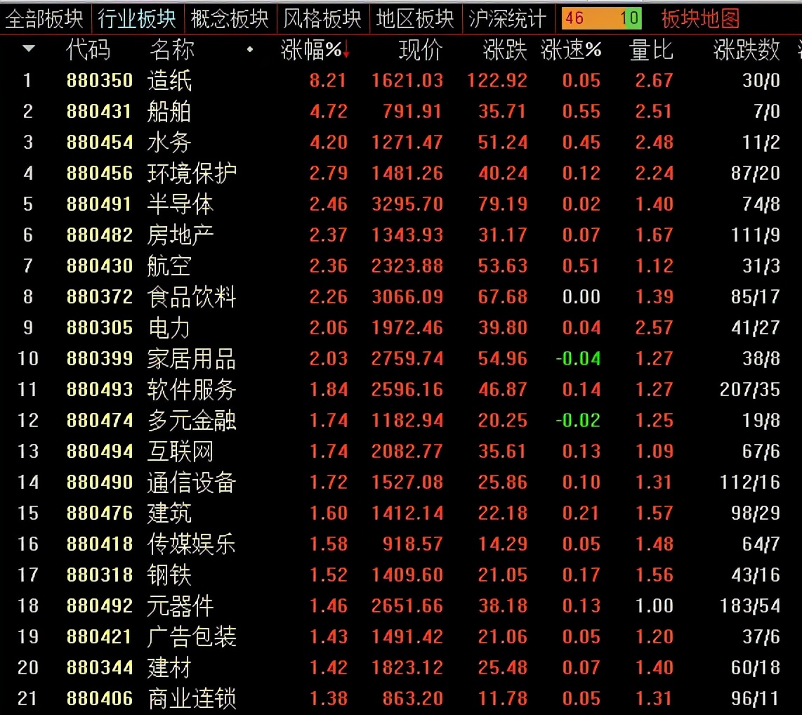 上午,A股各板块全线放量反弹,8大指数全部收阳。由于北上资金的回归,成交量也放大到近9000亿,比昨天上午增加1629亿。上午各指数的涨幅虽不到1%,但个股出现普涨格局,涨跌比悬殊为2781:1156。