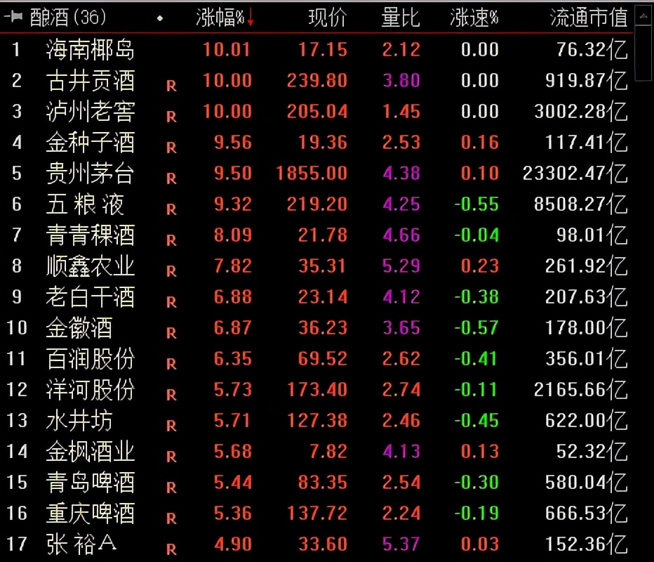 【白酒板块继续走强 贵州茅台触及涨停】贵州茅台拉升触及涨停,金种子酒、古井贡酒、青青稞酒、泸州老窖此前涨停,五粮液、今世缘、金徽酒、山西汾酒等大幅走高。