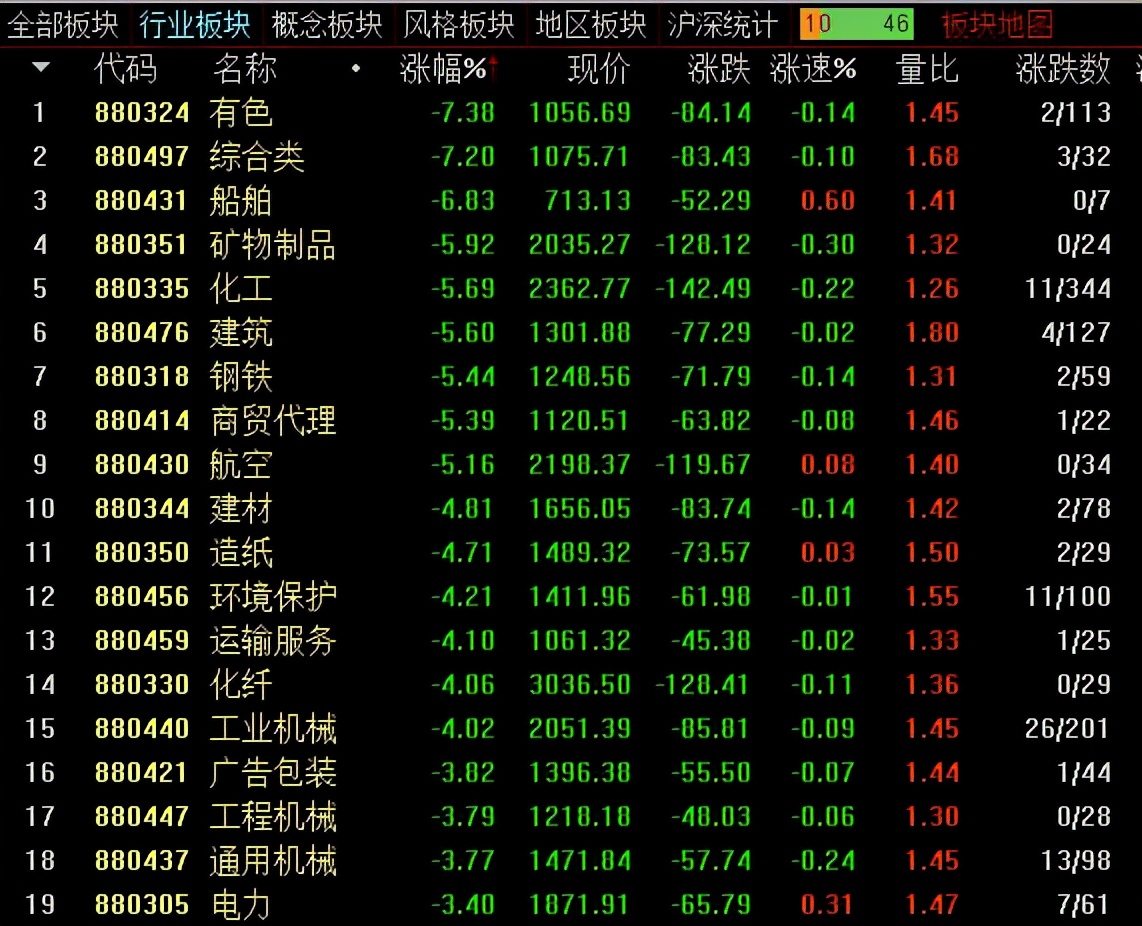 上周五A股各指数分化,个股跌多涨少。两市合计成交12833.94亿元,成交额连续46个交易日突破万亿元。合计986只个股上涨,3446只个股下跌,有53只个股涨停,72只个股跌停。上周五,沪指午后震荡下挫,创业板指涨幅明显收窄,上涨个股不足千家,跌幅超9%的个股逾百只,市场情绪冰点徘徊,亏钱效应明显。周期股出现跌停潮,煤炭、水泥、化工、钢铁等板块指数跌超5%;绿色电力板块午后回暖,医美、猪肉板块冲高回落。