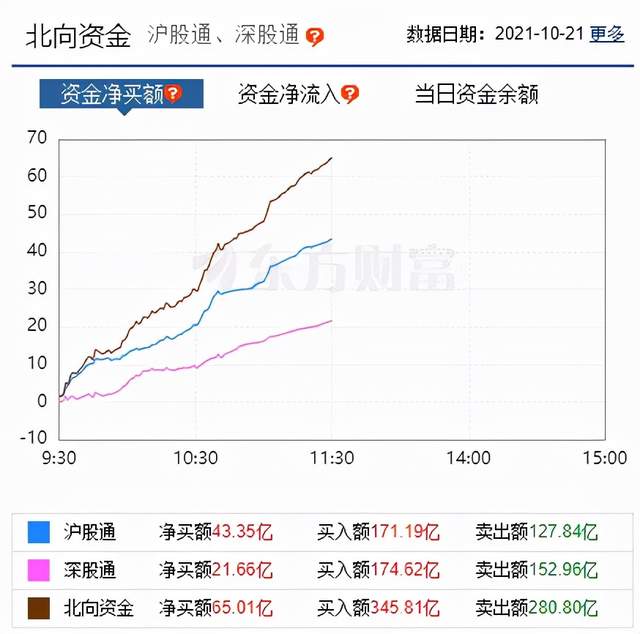 【北向资金净流入65亿元】截止午间收盘,北向资金净流入65.01亿元。