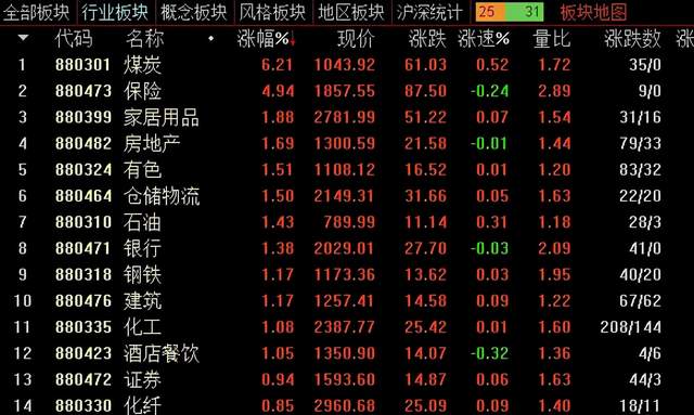 受此影响,今天上午煤炭、保险、房地产、有色、化工、银行股等领衔大盘上涨,沪指重返3600点整数关,但是白线高高在上、个股跌多涨少,涨跌比为1620:2289。光伏、新能源车、芯片、白酒股等前期周涨幅较大的个股则集体回调。