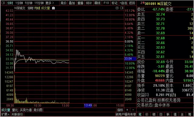 【N深城交上市破发 低开8.22%】深城交今日上市,竞价低开8.22%,截止午盘收盘跌10.44%。公司是一家聚焦于城市交通领域,以交通大数据分析为基础,为客户提供城市交通整体解决方案的公司,具体业务包括规划咨询、工程设计和检测、大数据软件及智慧交通等。