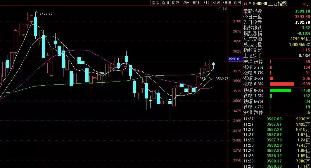 下午关注:大盘能否收在5天线3582点之上?上涨个股数能否扩大?成交量能否超1.1万亿?