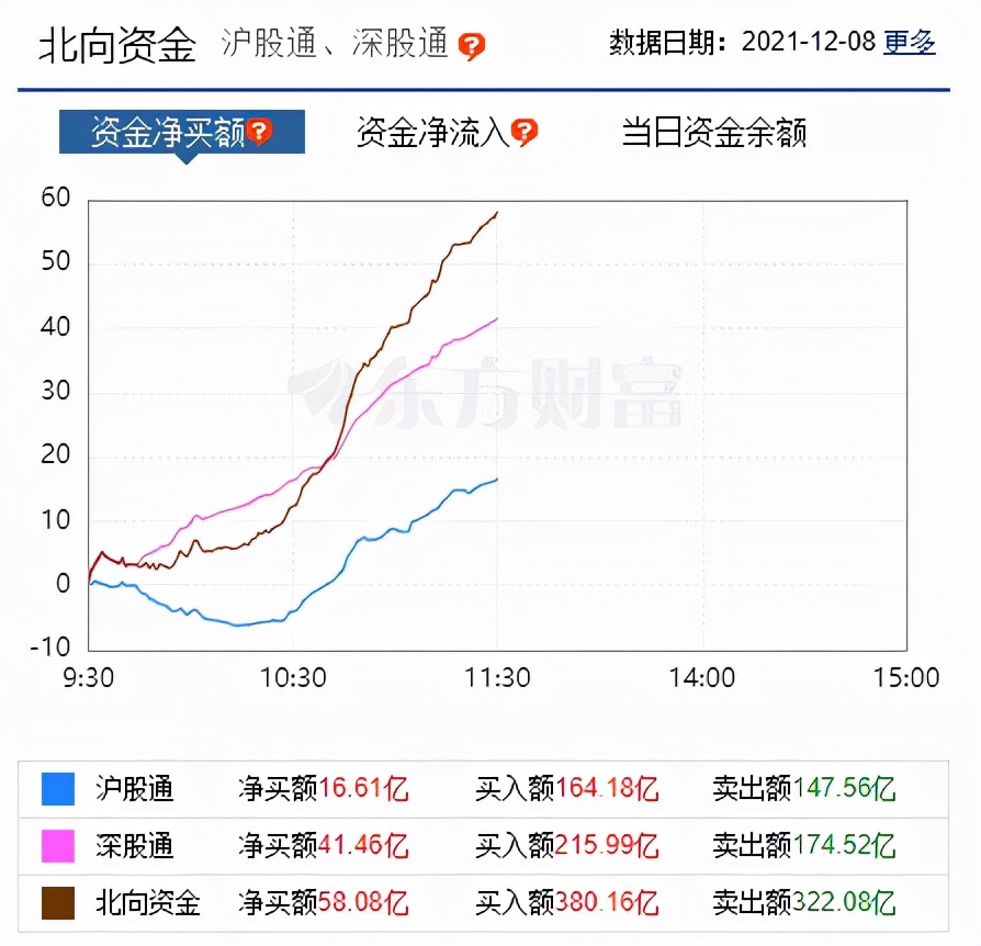 【北向资金净流入58亿元】截止午间收盘,北向资金净流入58.08亿元。