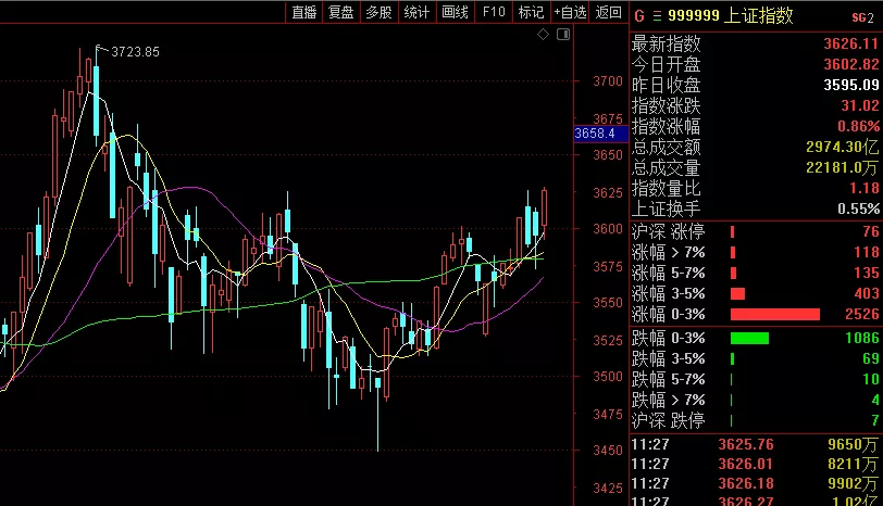 下午关注:大盘下方能否收在3600点之上?上方能否拿下3630点关键位?上涨个股数能否继续扩大?成交量能否超1.1万亿?