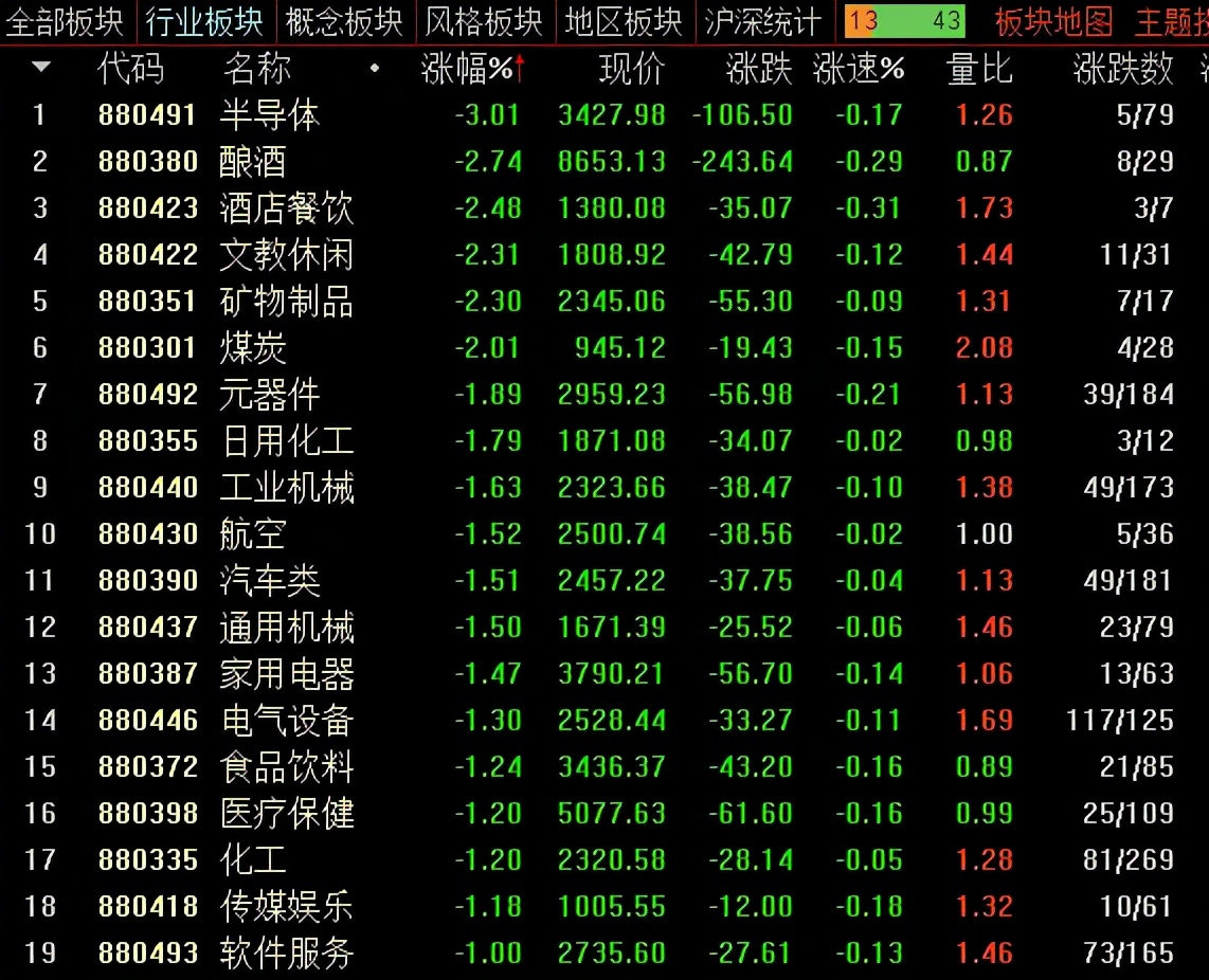 但今天大盘受到三重利空的冲击:一是美股高科技股大跌,纳指跌2.47%。二是美商务部滥用制裁中国34家实体企业。三是下周三最大IPO中移动发行,将抽取500亿资金以上。因此,大盘跳空低开,一路下行,各指数均跌1%—1.7%。