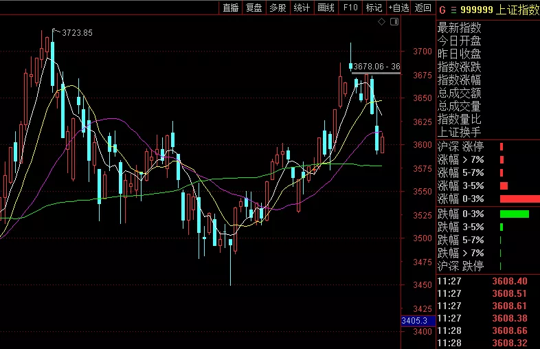 下午关注:大盘下方能否收在3600点之上?上方能否收复五周均线3615点?上涨个股数能否继续扩大?成交量能否超万亿?