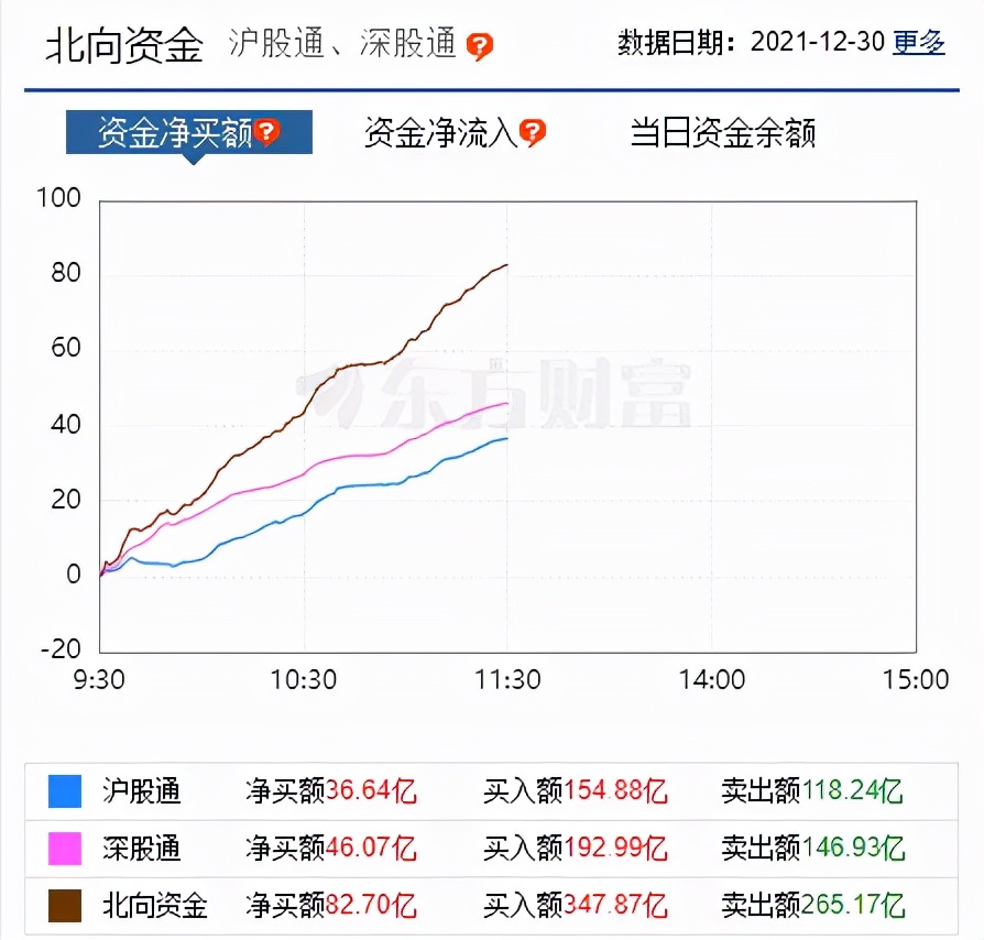 【北向资金净流入超82亿元】截止午间收盘,北向资金净流入82.70亿元。
