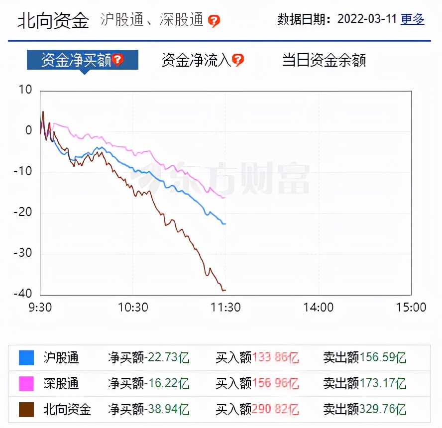 【北向资金净流入-38亿元】截止午间收盘,北向资金净流入-38.94亿元。