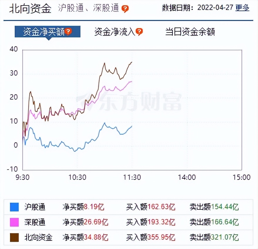 【北向资金上午流入34亿】截止午间收盘,北向资金净流入34.88亿元。