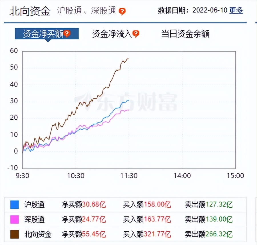 【北向资金净流入55亿元】截止午间收盘,北向资金净流入55.45亿元。