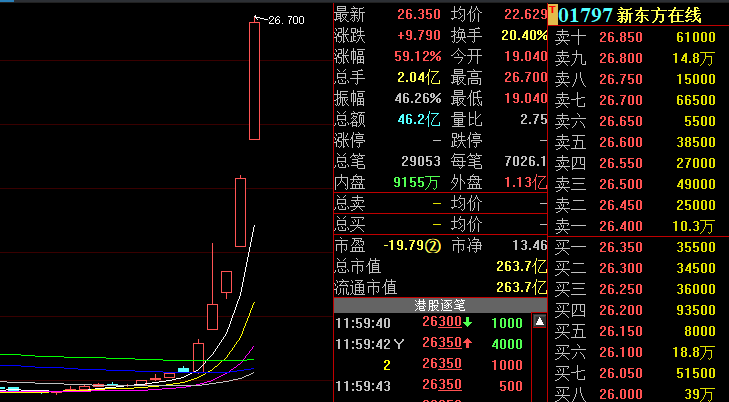 【新东方在线涨超40% 本月累计涨超500%】港股新东方在线涨超40%,成交额超25亿,本月11个交易日新东方在线累计涨幅超500%。