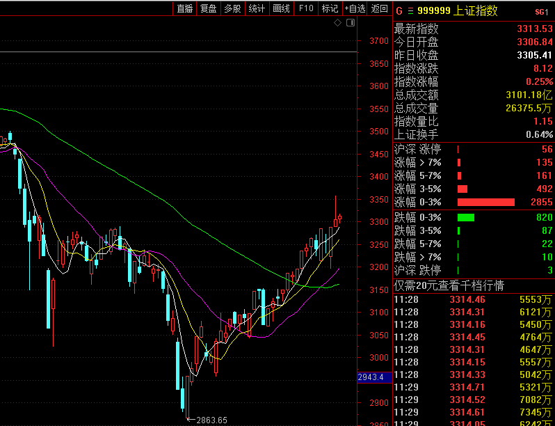 下午关注:大盘下方能否收在3300点之上,上方能否收在3330点之上?上涨个股数和涨停数能否进一步扩大?成交量能否达1.1万亿?