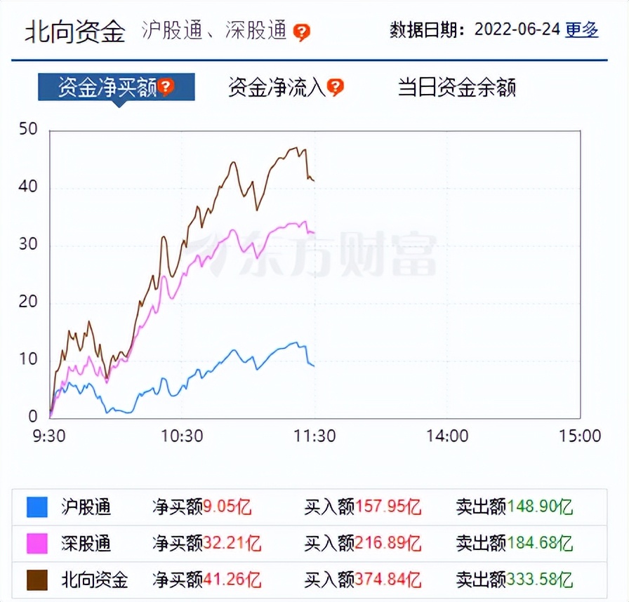 【北向资金净流入41亿元】截止午间收盘,北向资金净流入41.26亿元。